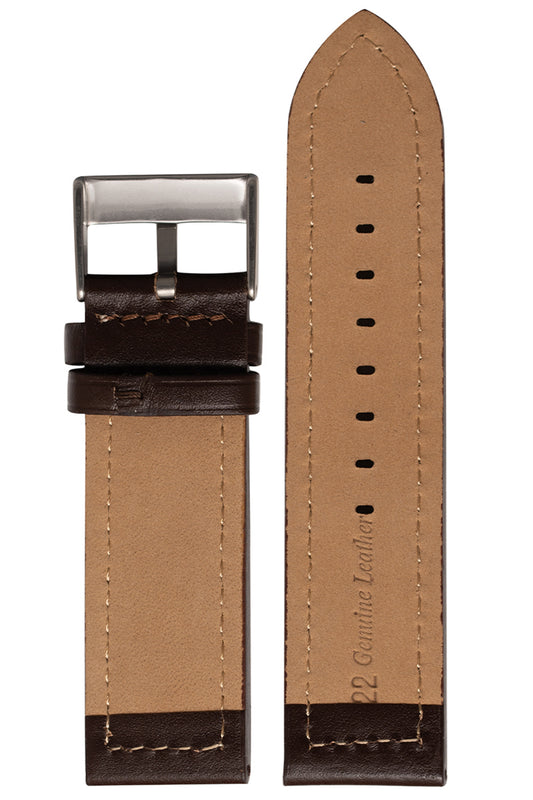 Pulseira Couro Reta Marrom Fivela Prata PU053.22 (22mm)