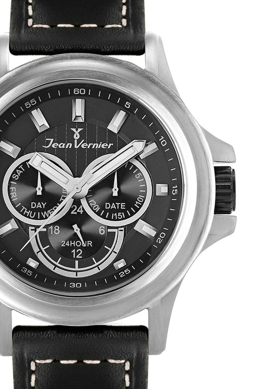 Relógio Jean Vernier Calendário Couro Preto JV01661