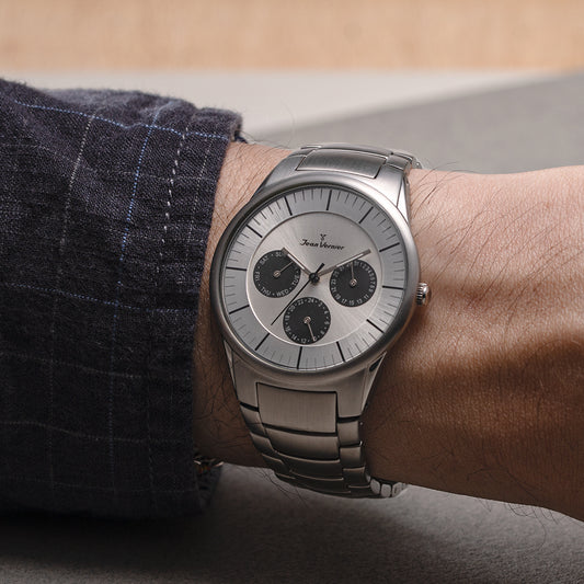 Relógio de Pulso Jean Vernier Prateado Cronógrafo JV62834