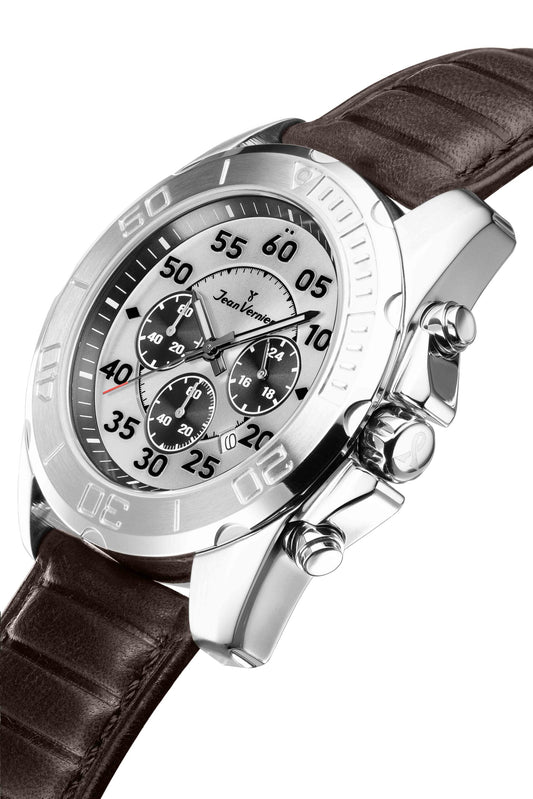 Relógio Jean Vernier Pulseira Couro Marrom Cronógrafo Masculino JV00189M