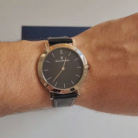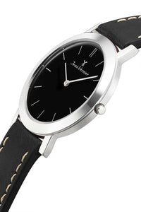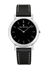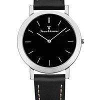 Relógio Jean Vernier Pulseira Couro Preto Social Movimento Suíço JV00047