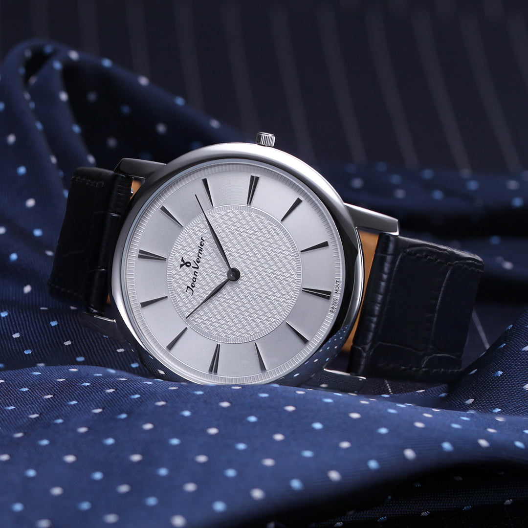 Relógio Jean Vernier Pulseira Couro Preto Social JV00333P