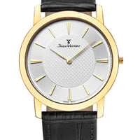 Relógio Jean Vernier Caixa Aço Dourado Pulseira Couro Preto Social JV00335P