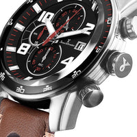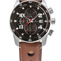 Relógio Jean Vernier Caixa Aço Pulseira Couro Marrom Cronógrafo Masculino JV005236