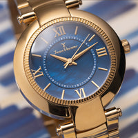 Relógio Jean Vernier Dourado e Azul Feminino Movimento Suíço JV01142