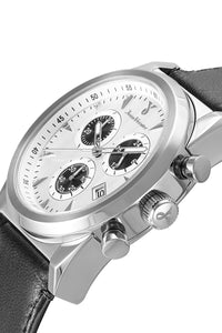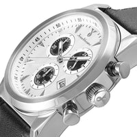 Com caixa em aço 316L e pulseira de couro tipo croco, este relógio de 43mm combina sofisticação e robustez na medida certa. O mostrador branco ou preto com relevos que se destacam à luz revela um acabamento refinado, enquanto o cronógrafo e o calendário embutido adicionam funcionalidade com estilo. Fechamento oculto com botão e regulagem, para um ajuste seguro e elegante no pulso.