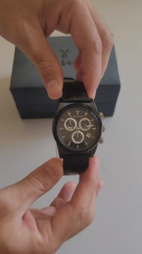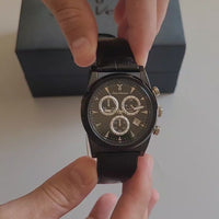 Com caixa em aço 316L e pulseira de couro tipo croco, este relógio de 43mm combina sofisticação e robustez na medida certa. O mostrador branco ou preto com relevos que se destacam à luz revela um acabamento refinado, enquanto o cronógrafo e o calendário embutido adicionam funcionalidade com estilo. Fechamento oculto com botão e regulagem, para um ajuste seguro e elegante no pulso.