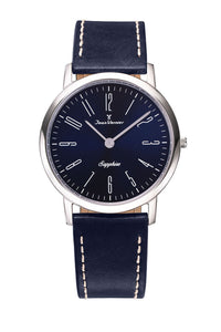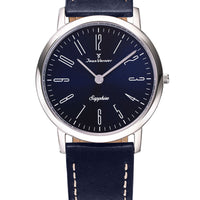 Relógio Jean Vernier Pulseira Couro Azul Social Vidro Cristal Safira JV03324A