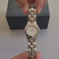 Relógio com caixa de aço 316L, 31mm de diâmetro, mostrador prata texturizado, pulseira de aço 316L