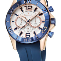 Relógio Jean Vernier Caixa Aço Azul Pulseira Silicone Movimento Suíço JV06338
