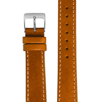 Pulseira de couro lisa nas cores preto, marrom ou havana, com 20mm de largura e fivela de aço da cor prata.
