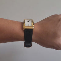 Relógio com caixa de aço 316L , 50x25mm de tamanho e mostrador na cor branco.