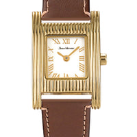 Relógio com caixa de aço 316L na cor dourado, 22x32mm de tamanho e mostrador da cor branco.