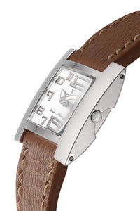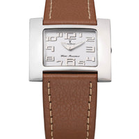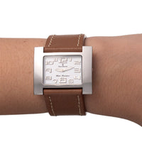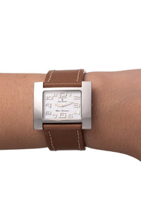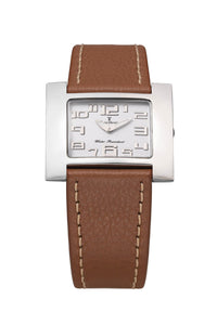Relógio com caixa de aço 316L, 36x30mm de tamanho, mostrador na cor branco e pulseiras nas opções de aço ou couro.