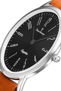 Relógio caixa de aço 316L, 37mm de diâmetro nas cores dourado ou prata, mostrador branco. Pulseira de couro nas cores havana, marrom e preto.