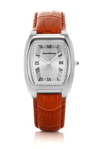 Relógio com caixa de aço 316L, 31x41mm de tamanho, mostrador na cor prata ou preto. Pulseira de couro tipo croco preto, marrom ou havana.