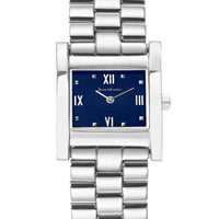 Relógio com caixa de aço 316L, 22x26mm de tamanho, mostrador na cor preto ou azul.