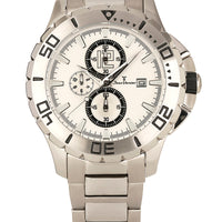 Relógio com caixa de aço 316L, 44mm de tamanho e mostrador branco.