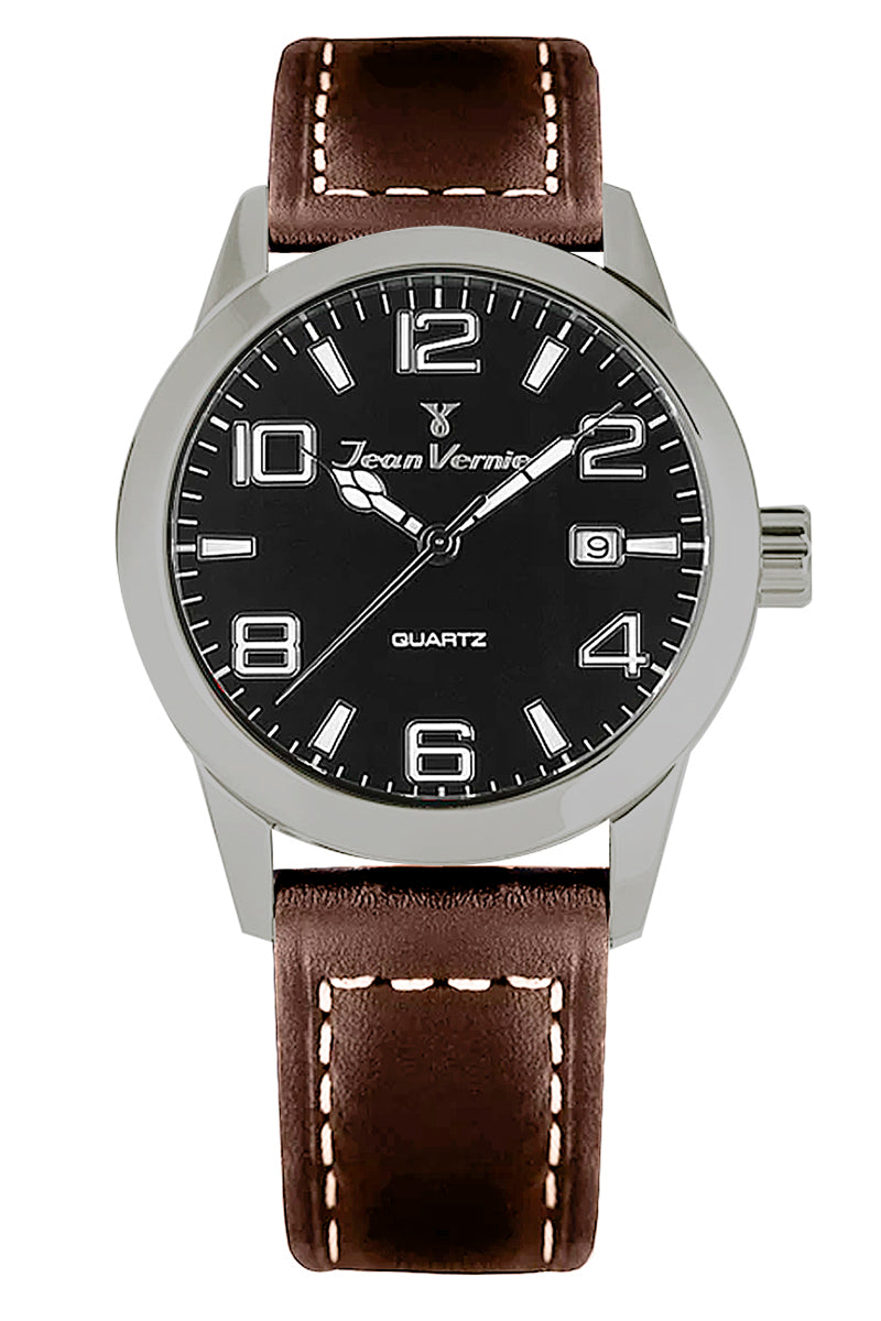 Relógio Jean Vernier Redondo Couro Marrom Suíço JV07000JM