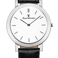 Relógio Jean Vernier Suíço Couro Preto Tipo Croco JV00110B